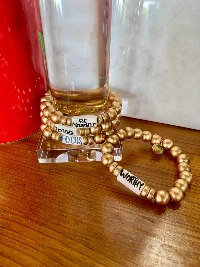 Small Affirmation Word Beaded Bracelets Inspirational - Gold