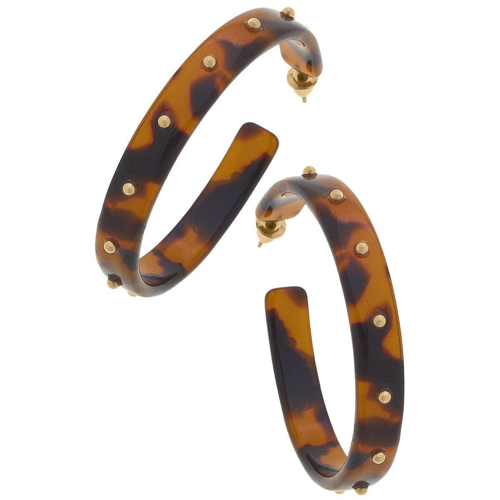 Leighton Studded Metal Hoop Earrings in Tortoise