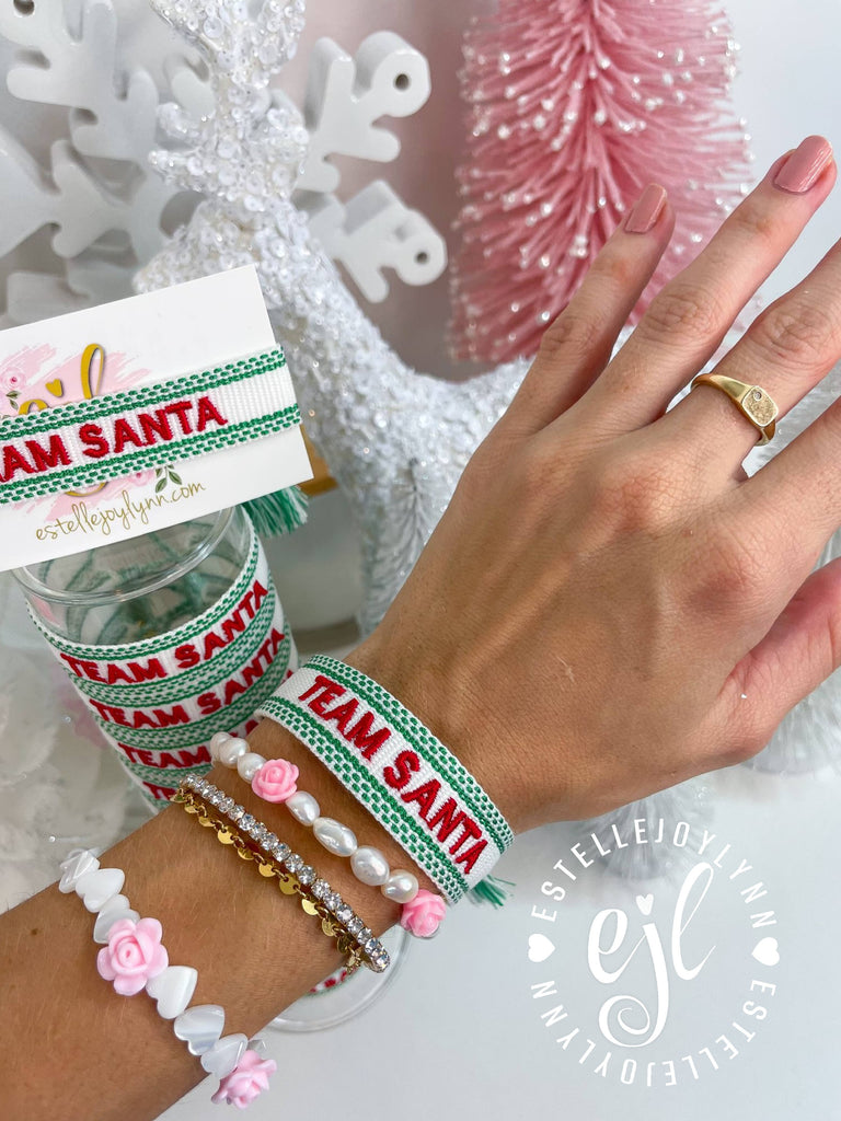 TEAM SANTA Embroidered Christmas Tassel Bracelet / Holiday