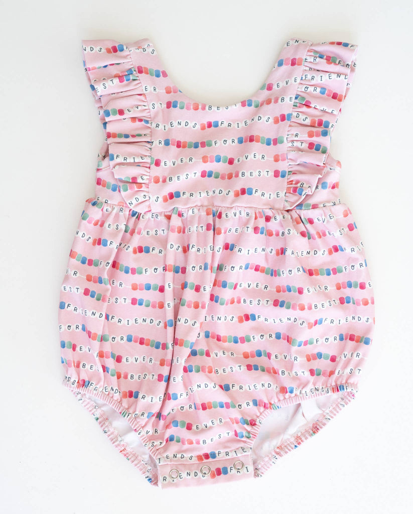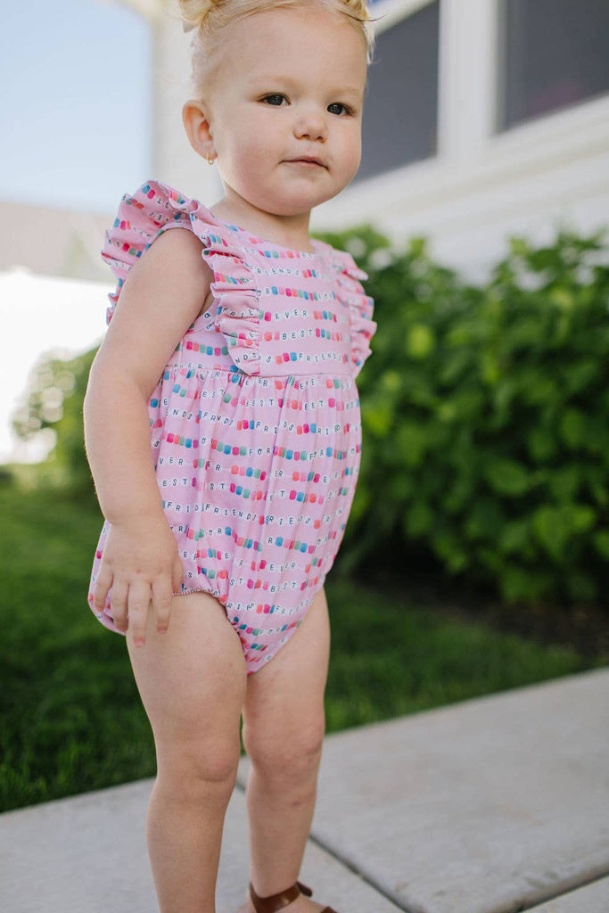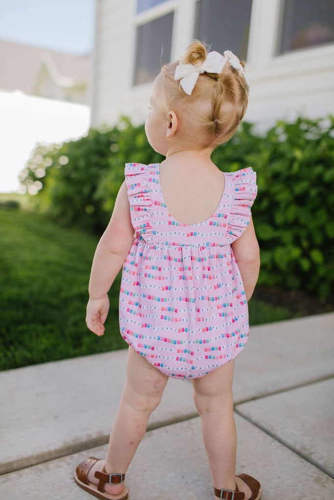 Dress your little one in effortless style with our Amelia Romper, thoughtfully designed for both comfort and cuteness. Featuring delicate ruffle detailing on the front and back, this sleeveless romper is perfect for warm days or layering under cozy cardigans.