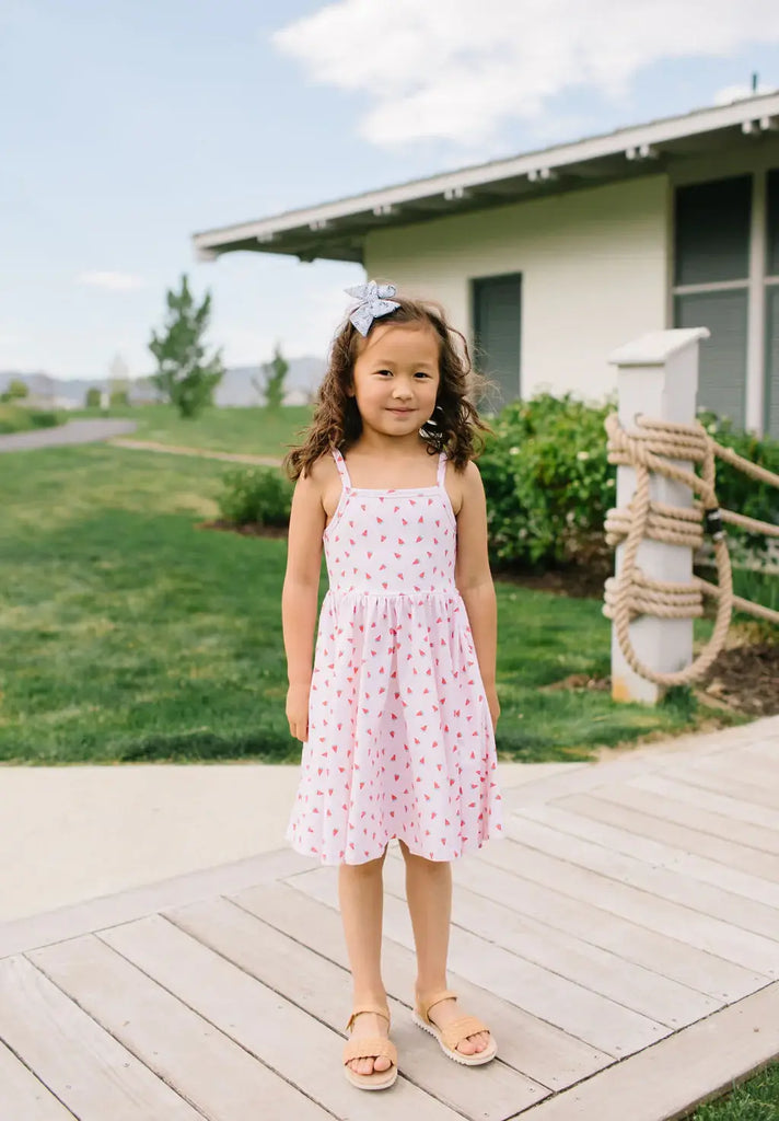 Our wide necked spaghetti strap style is a summer update to our signature ballet inspired twirl dress. Featuring extra soft and stretchy fabric with side seam pockets, a double lined bodice, and a full circle skirt for the big twirls we’re known for!