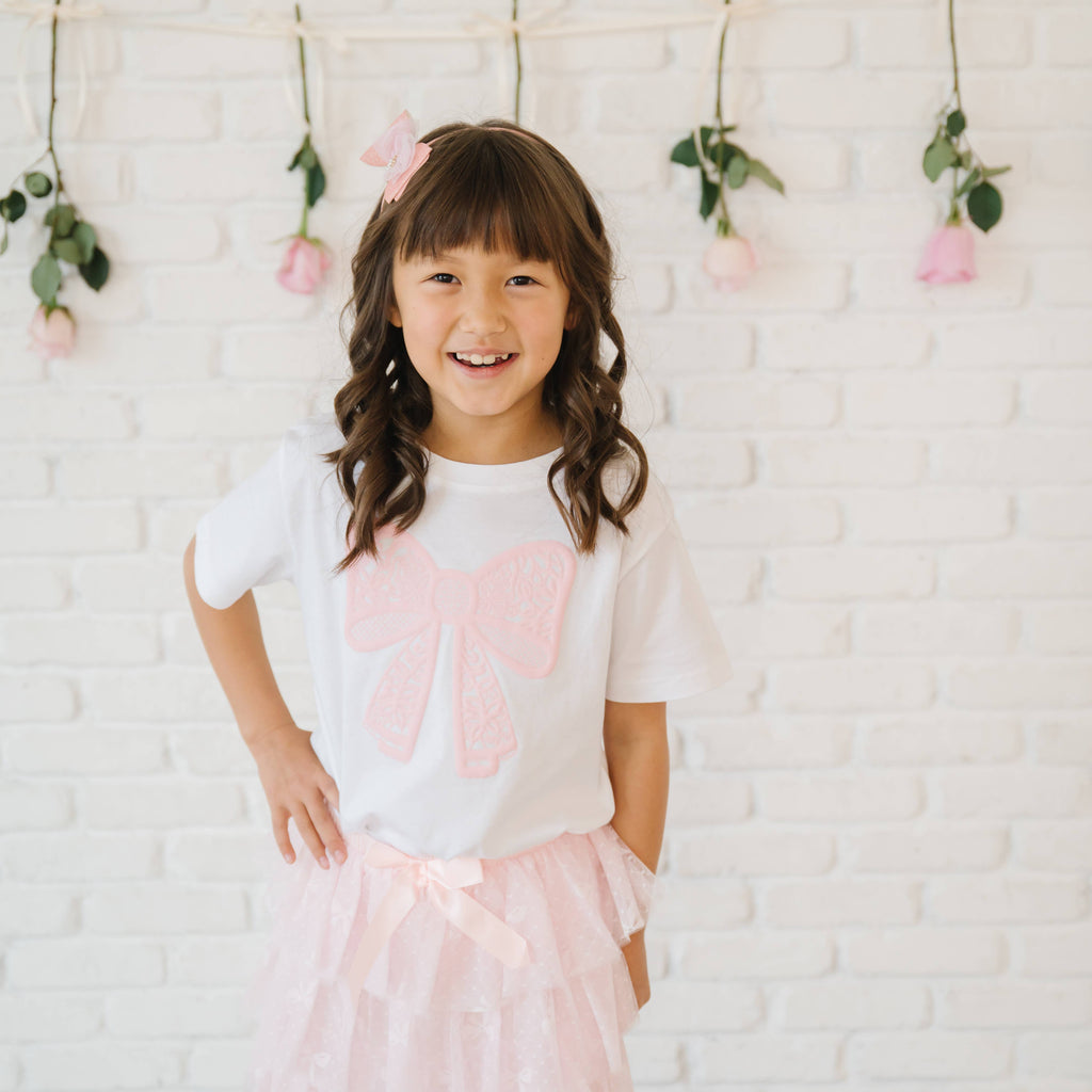 This darling tee brings all the charm with a big pink bow that adds a sprinkle of sweetness to her everyday adventures.