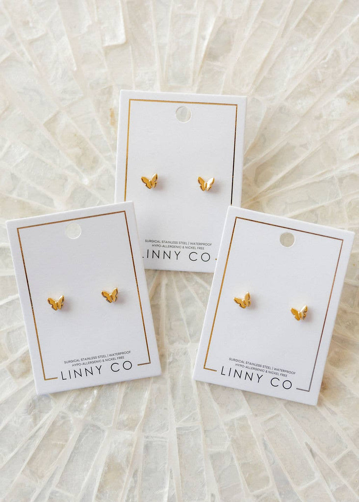 A timeless symbol of transformation, the Glossy Gold Butterfly Stud Earrings add a graceful touch to any outfit. These 8mm studs feature a stunning glossy gold butterfly design. Crafted from 100% surgical-grade stainless steel, these earrings are lightweight, durable, and hypoallergenic, making them ideal for sensitive ears. The secure screwback design ensures a snug and comfortable fit.