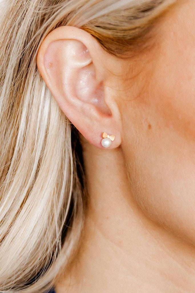Add a touch of elegance with a playful twist with the Heidi Pearl Bow Stud Earrings. Featuring a classic pearl with a gold bow on top, these 9mm studs are a perfect balance of sophistication and whimsy. Crafted from 100% surgical-grade stainless steel, these earrings are lightweight, durable, and hypoallergenic, making them ideal for sensitive ears. The innovative screwback design ensures a secure and snug fit, making them comfortable for everyday wear.