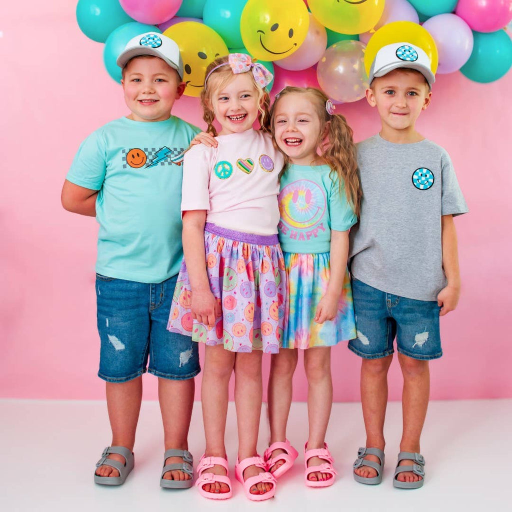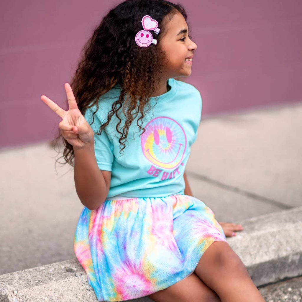 The Tie Dye Tutu is a fun skirt and dress up tutu to welcome Spring! Features: Tie Dye printed tulle accented with rose gold glitter pin dots White cotton lining White glitter waistband Care: Hand wash and line dry The Sweet Wink difference: Super soft tulle that doesn’t scratch or itch Cotton lining provides extra coverage and comfort “Shed-free” embellishments ensure glitter does not sprinkle around the house