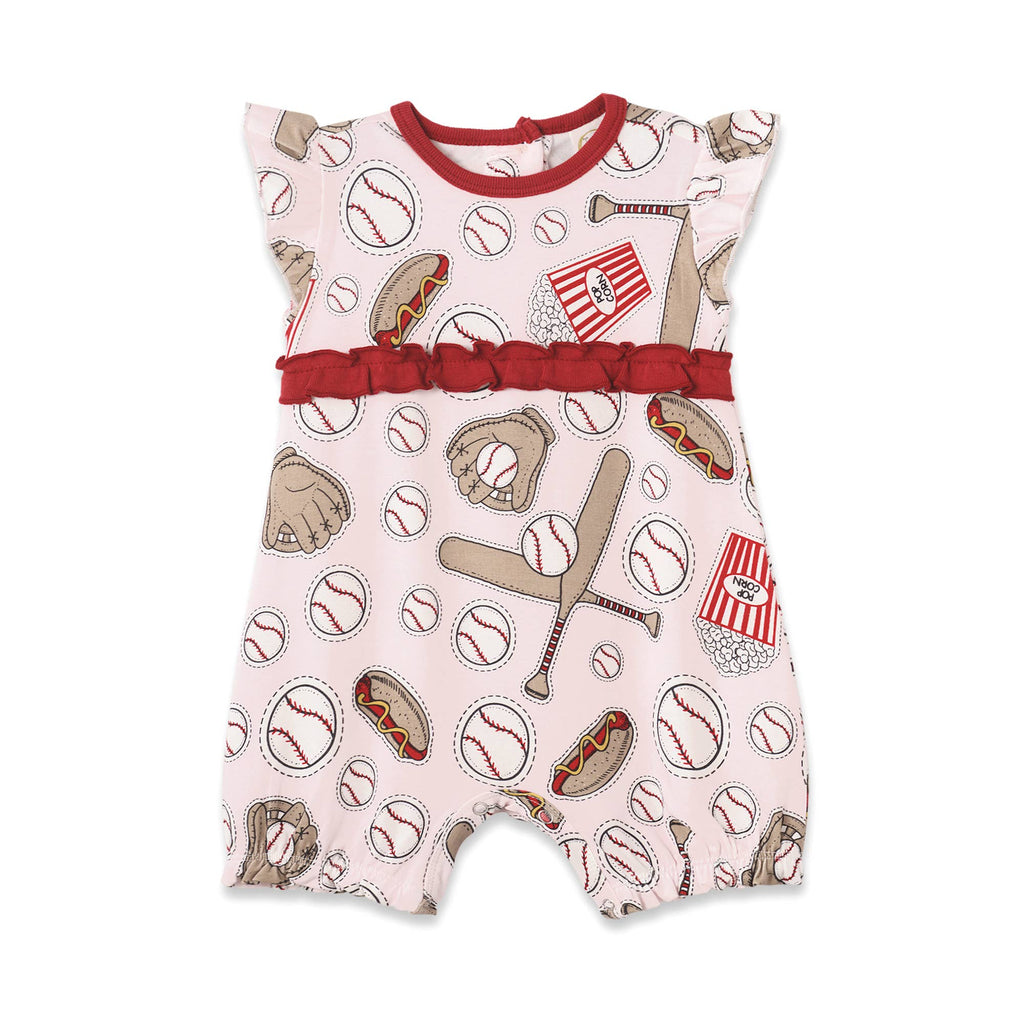 Baby Girl's Batter Up Pink Bamboo Romper