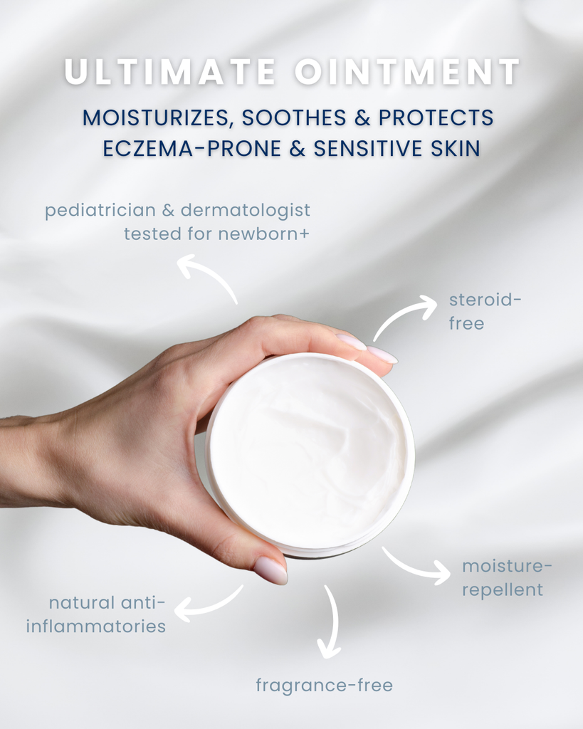 • Awarded the Seal of Acceptance by the National Eczema Association • Fragrance- and steroid-free formula helps soothe itching and discomfort • Zinc oxide protects and supports the skin’s natural healing process • Enriched with bisabolol and allantoin to help reduce redness and inflammation • Developed for eczema flare-ups, cradle cap, cracked, ultra-dry, and chapped skin • Perfect for parents seeking targeted relief when skin needs extra care Our Promise: • Hypoallergenic • Pediatrician-tested & Dermatologist-tested • Cruelty-free and Non-toxic • Made in USA • Free from Parabens, Preservatives, Phthalates, and Dyes
