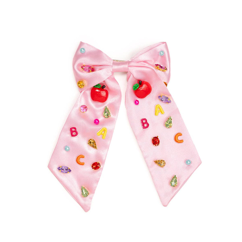 Every little girl needs the perfect hair clip to complete her look! The Back To School Gemstone Hair Bow Clip is the perfect hair accessory for celebrating back to school.