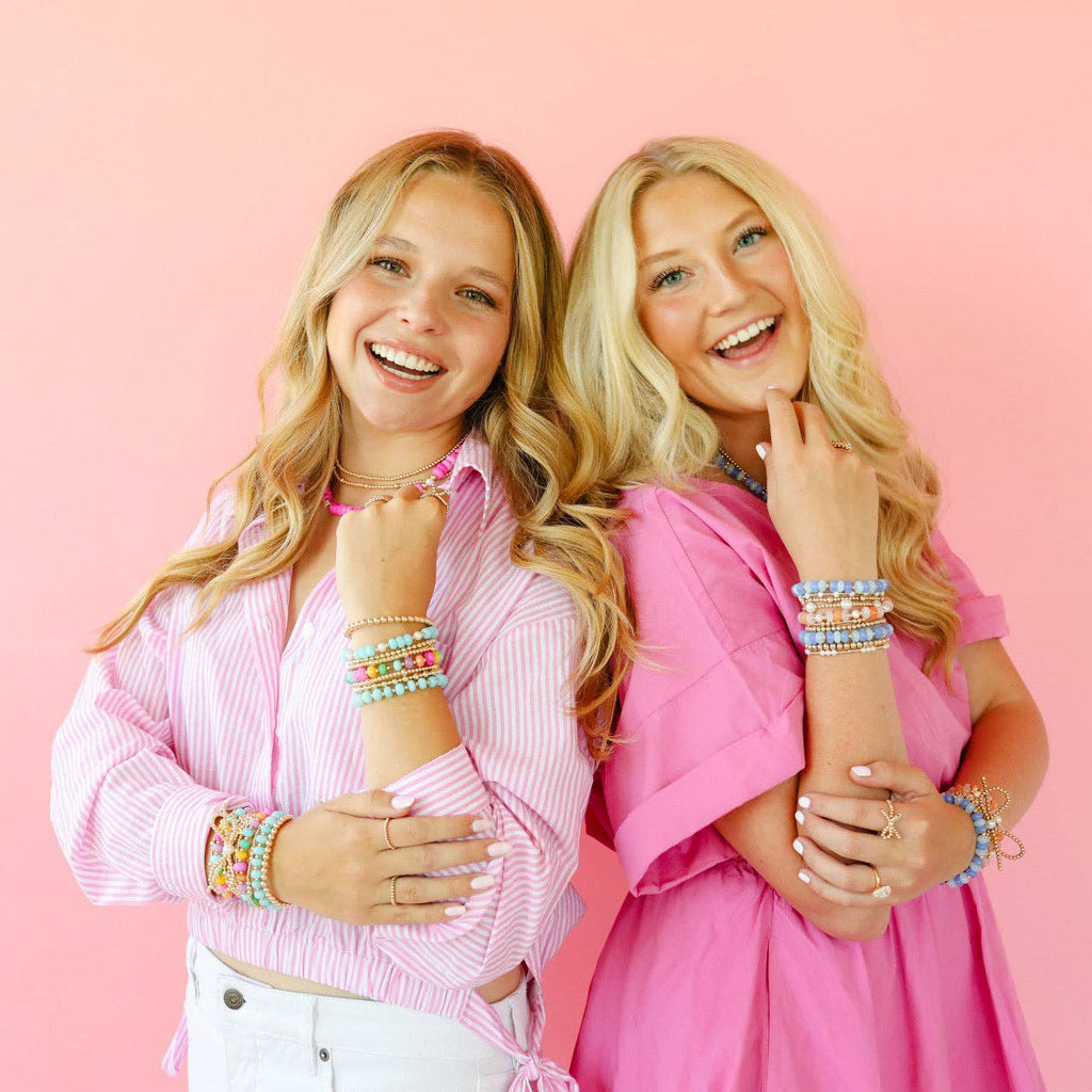 Meet your new go-to accessory for the summer season! Our Natural Gemstone Beaded bracelet injects a vibrant and fun vibe into any stack, elevating your look. Mix and match it with Beaded Blondes gold or pearl necklaces. Made from 14 k gold filled beads + dyed quartz so perfect for everyday wear! Sweat proof, water proof and tarnish free! Handstrung with love in College Station, Texas. View our sizing guide