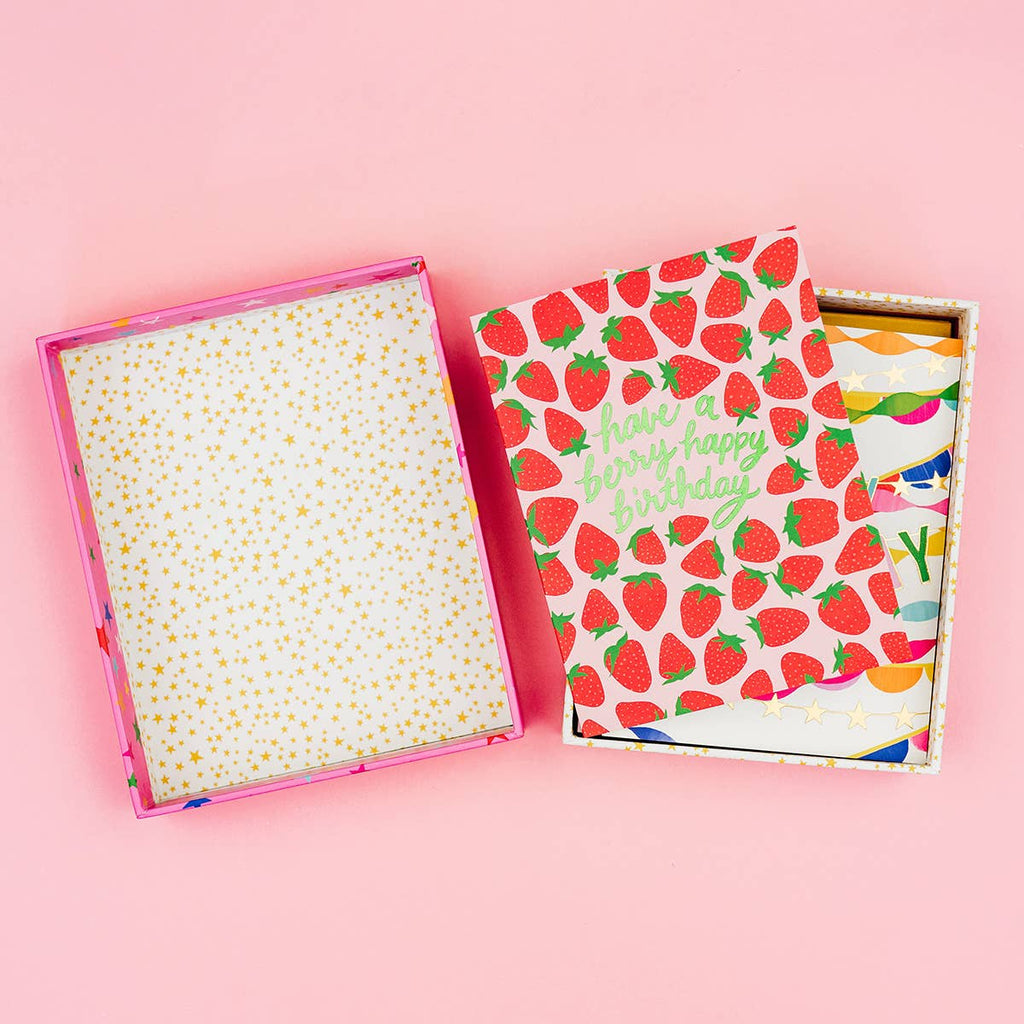 This wide assortment of greeting cards for all occasions includes Thank You, Birthdays, Sympathy cards, and more! This set comes in gift box packaging complete with beautiful foil imprinting, envelopes, and envelope sealing stickers. Fill your store with fun stationery that makes the perfect gift!
