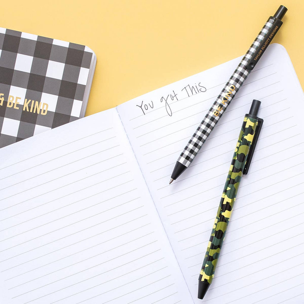 MINIMUM QUANTITY: 4 Details ♥ Set of 2 notebooks ♥ One black gingham design and one camo design ♥ Size: 5" x 7" ♥ 50 lined pages ♥ Gold foil imprinting on covers ♥ Shrink-wrap packaging ♥ Rounded corners ♥ Imported Our notebooks, journals, and books are perfect for teacher gifts, back to school shopping, holiday gifts, Valentine's Day gifts, Easter baskets, Mother's Day gifts, gift sets, and graduation gifts! We have faith-based, Christian, and spiritual inspired notebooks. SKU: NBK-21