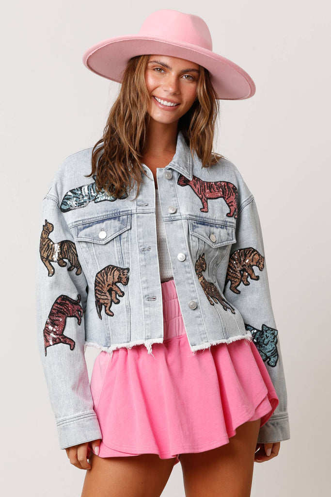 Sequin Tiger Denim Jacket