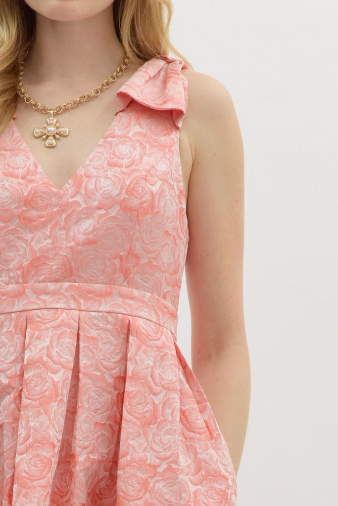Flower Trim Detail Half Zip Puff Sleeve Dress