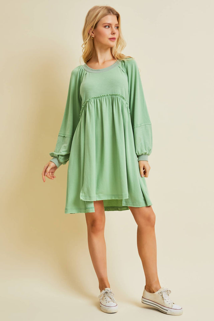 FLOWY FLARE BABYDOLL DRESS WITH POCKETS: APPLE GREEN