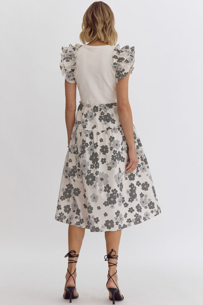 Flower Trim Detail Half Zip Puff Sleeve Dress