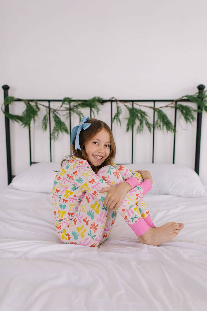 A Classic 2 piece pajama set with a snug fitting long sleeve and pant made of a breathable bamboo for ultra comfort. Experience our buttery soft bamboo fabric, this stretchy smooth fabric is perfect for comfy nights in bed, movie nights and even just lounging around! Note: We do not use flame resistant chemicals on our pajamas or sleepwear and all lounge and pajamas are made to meet the snug fit requirements of the CPSC. Try our matching littles look with the Baby PJ! Wash cold with like colors 95% Viscose from Bamboo, 5% Spandex Hang or lay flat to dry for longer wear