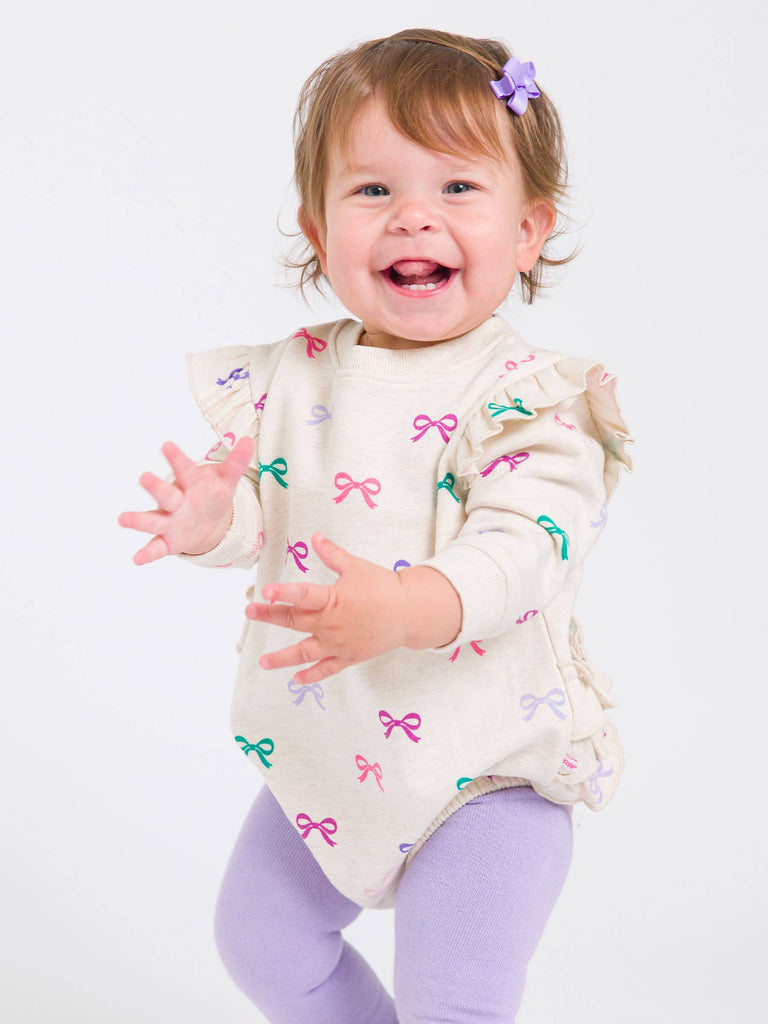 Baby Girls Heather Oatmeal Ribbons Sweatshirt Bubble Romper
