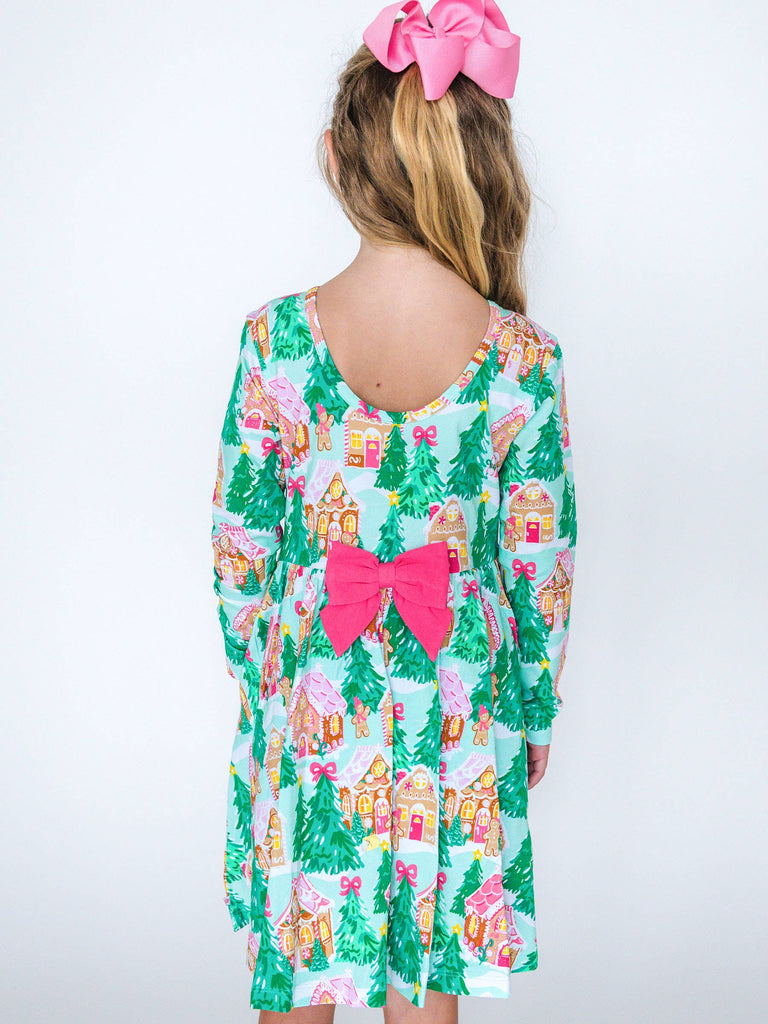 Our bestselling long sleeve twirl dress is a must-have addition to any little girl's wardrobe. Crafted from high quality knit fabric, this dress is gentle on skin, ensuring a comfortable fit and easy wear. Functional pockets make it practical, and a sweet bow accent on the back adds the perfect girly touch!