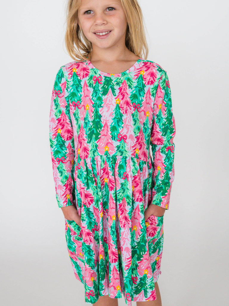 Our bestselling long sleeve twirl dress is a must-have addition to any little girl's wardrobe. Crafted from high quality knit fabric, this dress is gentle on skin, ensuring a comfortable fit and easy wear. Functional pockets make it practical, and a sweet bow accent on the back adds the perfect girly touch!