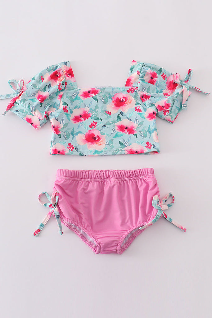 Baby Girls Bubblegum Pink Butterfly Garden Toile One Piece Rash Guard