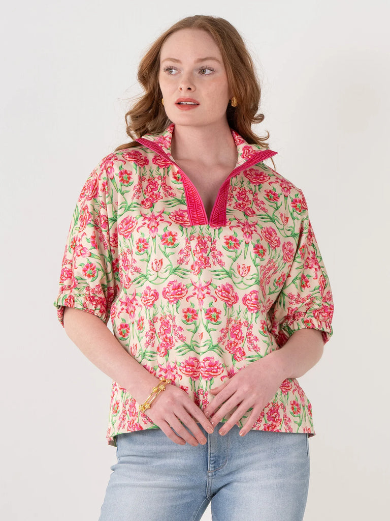 Cream top with pink bows