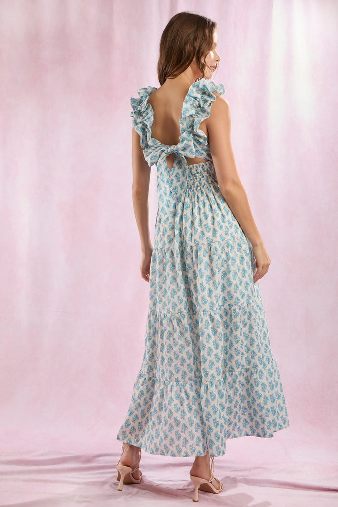 Tie back ruffled neck maxi