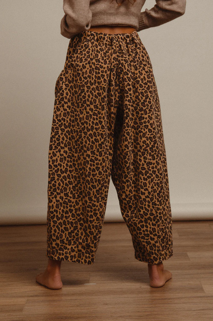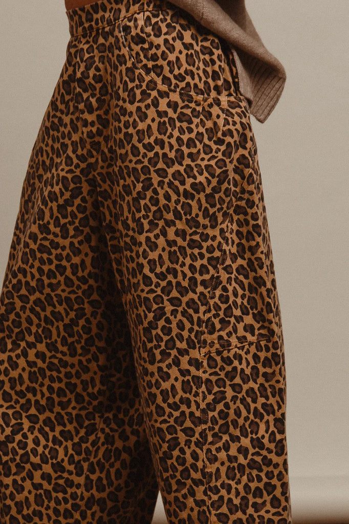 Washed leopard denim mid rise pants