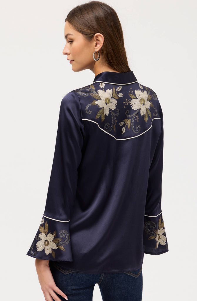 Western Flutter sleeve silk blouse- Corinthe