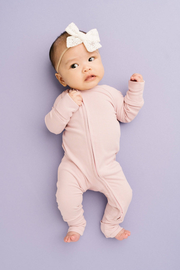 Ribbed Bamboo 210g Buttery soft, lightweight, breathable, and stretchy Fold over mittens up to 12-18M Fold over footies Features a 2-way zipper for easier changes Designed with a snug fit for safety Fabric: 95% viscose bamboo, 5% spandex No flame retardants or chemicals Machine wash, tumble dry