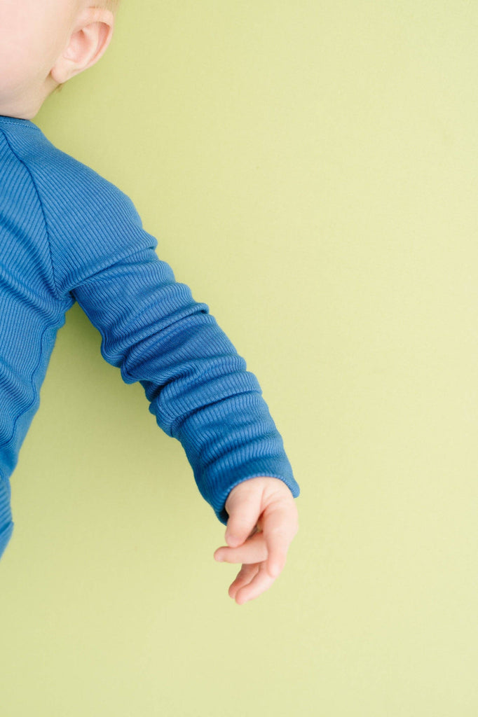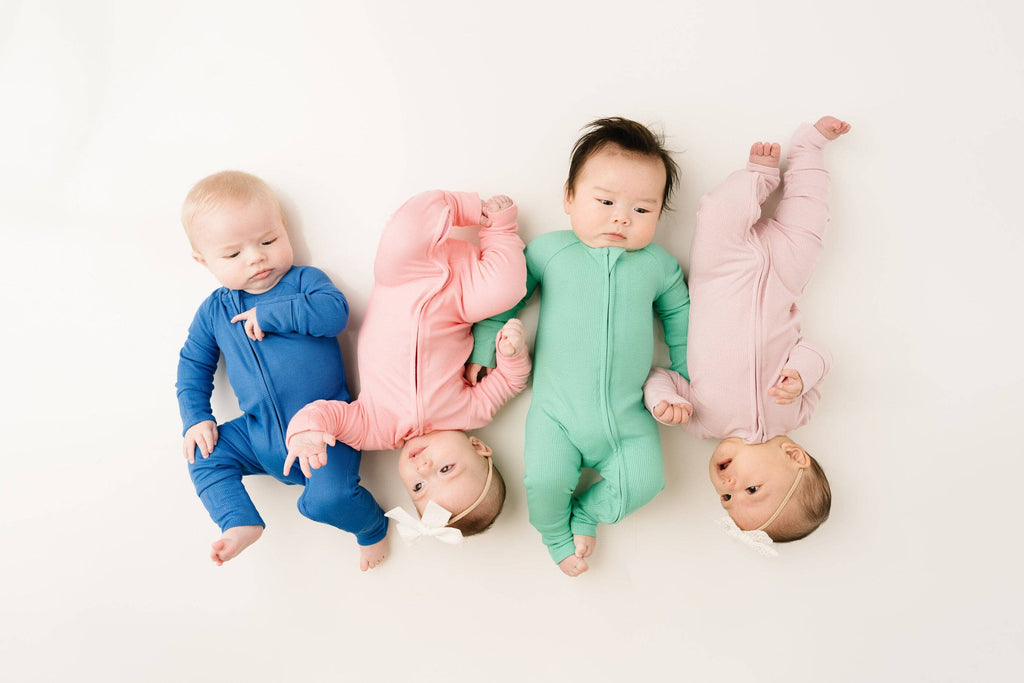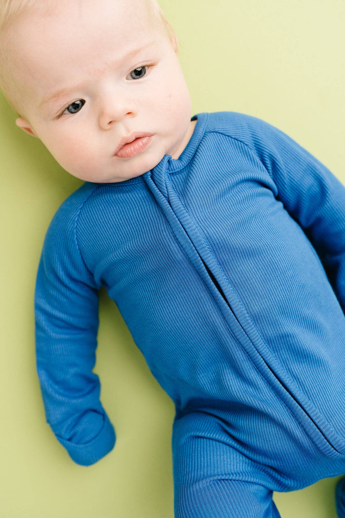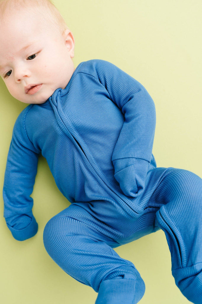 Ribbed Bamboo 210g Buttery soft, lightweight, breathable, and stretchy Fold over mittens up to 12-18M Fold over footies Features a 2-way zipper for easier changes Designed with a snug fit for safety Fabric: 95% viscose bamboo, 5% spandex No flame retardants or chemicals Machine wash, tumble dry