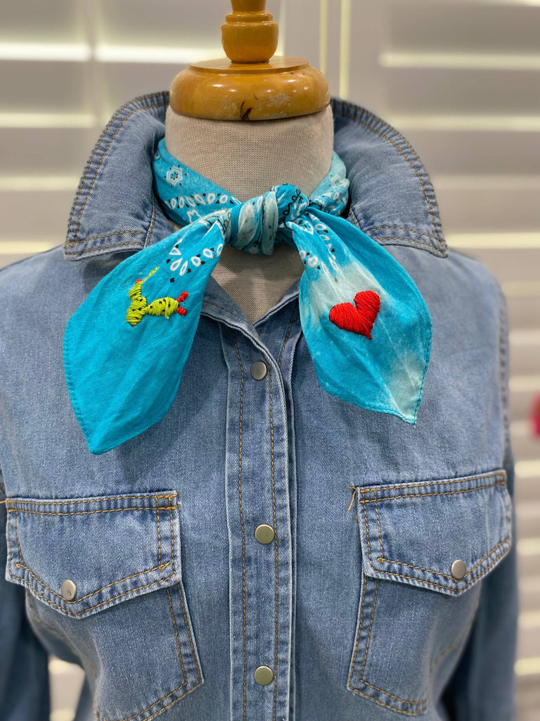 It’s all in the details. Each bandana is hand embroidered with love just for you.