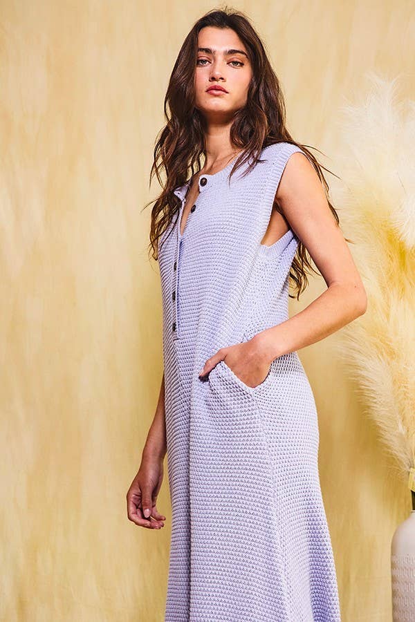 Wide Leg Button-up Loose Fit Solid Sweater Jumpsuit - Sleeveless - Button closure at front - Rounded neckline - Wide leg - Side slant pockets