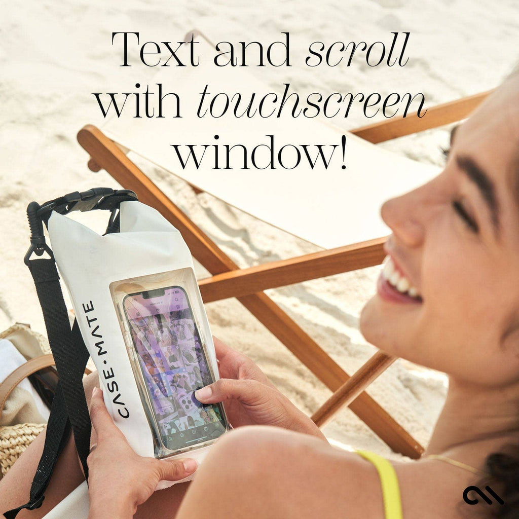 Keep your essentials dry with the Waterproof Mini Bucket Bag while at the beach, hitting the slopes, or on the lake! Confidently keep out water, snow, dust, sand, and dirt with the roll-top enclosure that ensures a perfect seal. With touchscreen access to your phone, you can check messages or notifications without removing your phone, making it easy to stay connected and protected. This perfect beach bag’s adjustable strap lets you carry your essentials in a variety of crossbody styles.