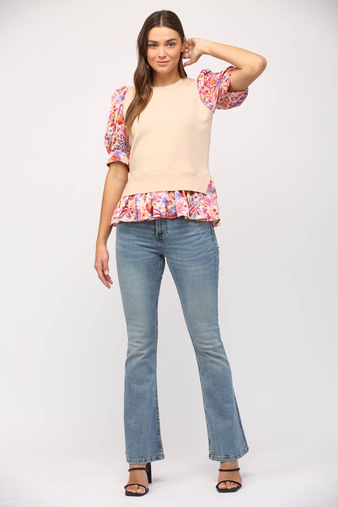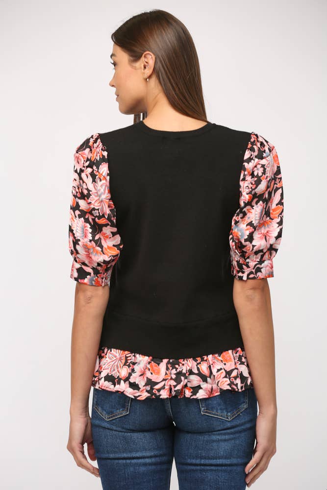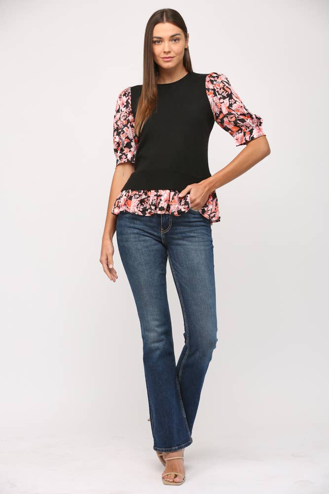 CONTRAST WOVEN SLV & HEM CREW NECK SWEATER