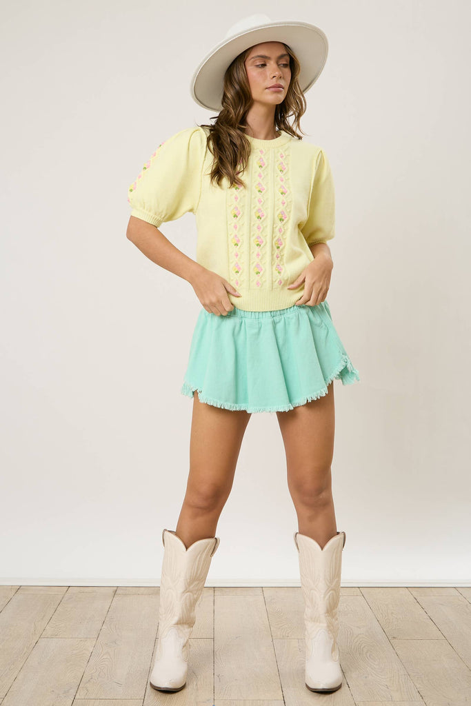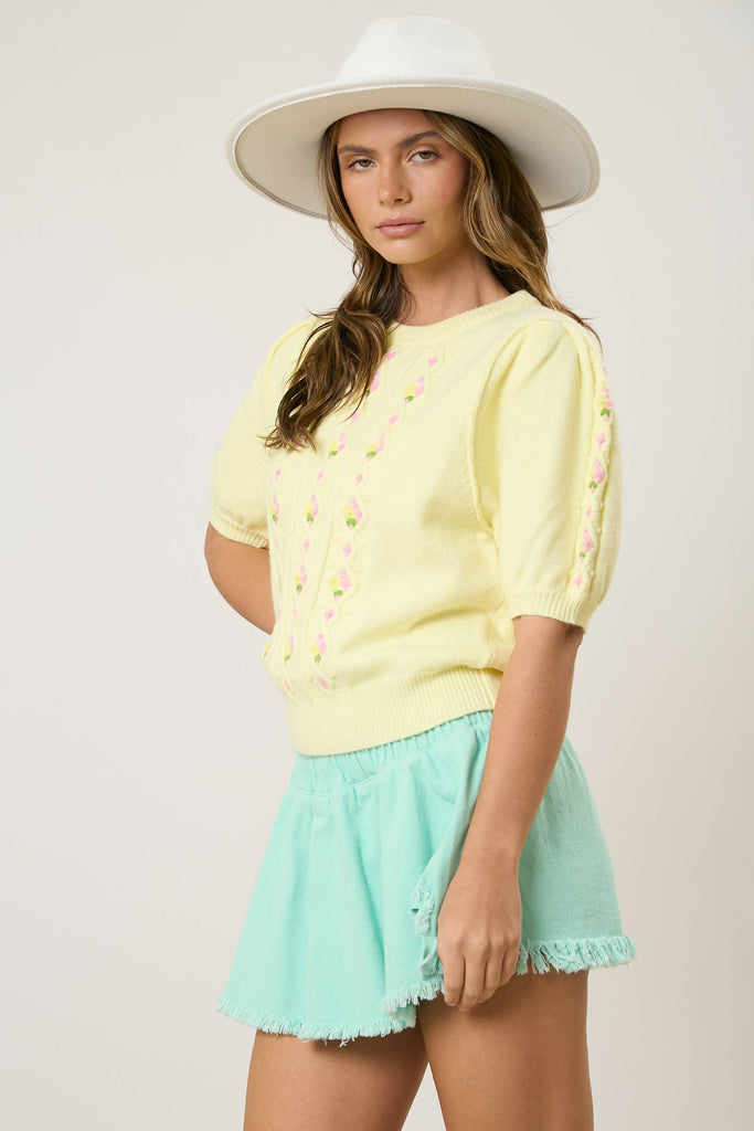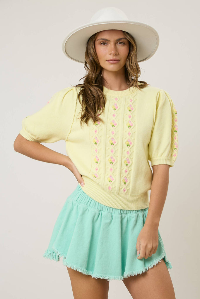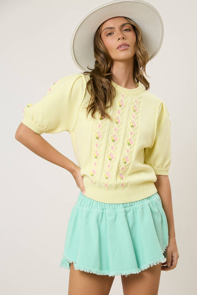 Hand Knit Flower Detail Sweater