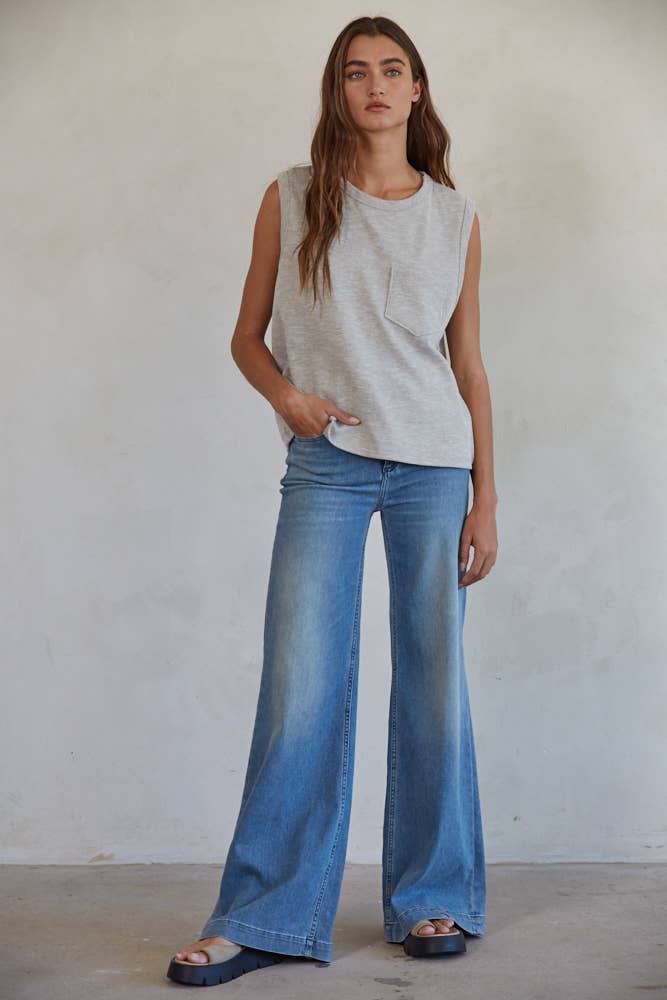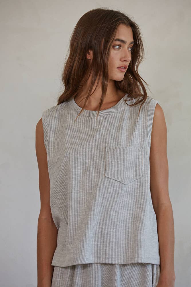 EVERITT TANK- Knit Polyester Cotton Spandex Ribbed Crew Neck Sleeveless Tank Top With Front Pocket (Optional Set Style# RJ3146, RJ3147, RJ3148)