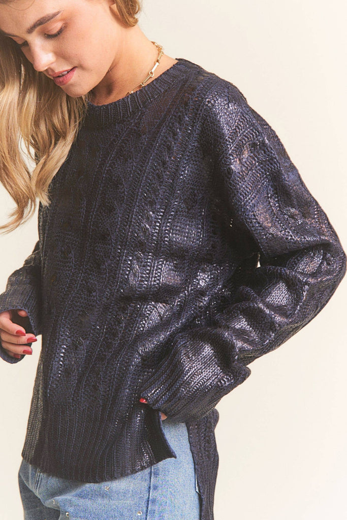 Women's cire knit fabric long sleeve casual roudn neck sweater top.