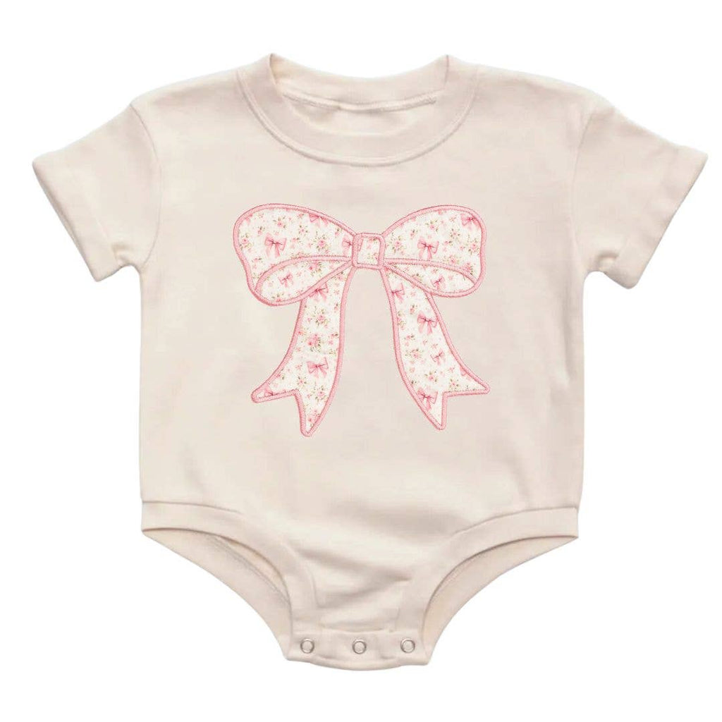 Ditsy Floral Bow Patch Short Sleeve Romper