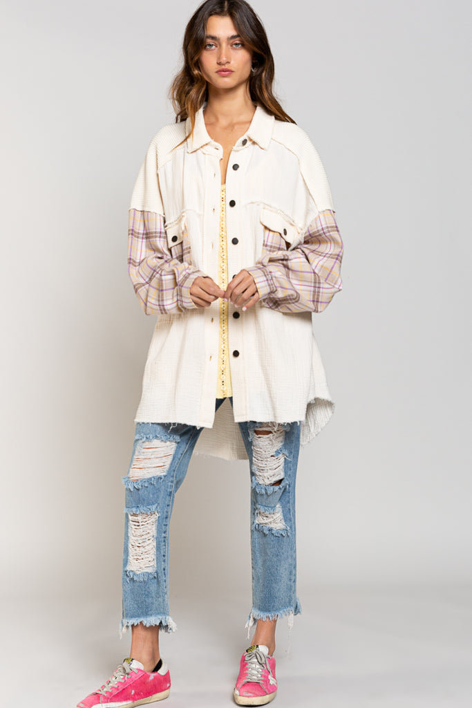 Plus Size Plaid Sleeve Tunic/Shacket